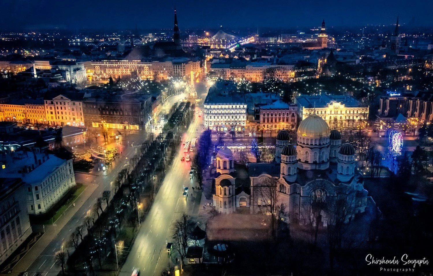 To enjoy a different perspective of Riga, go to the Skyline Bar located on the 26th floor of the Radisson Blu hotel, order your dinner or snack (I say snack because being in the northern part of Europe, the sun sets at around 15:30 during Christmas time in Riga), and watch the sun go down over the Riga Skyline. The only impediment to photography is that you have to take the pictures through the glass windows, and hence you may get reflections.