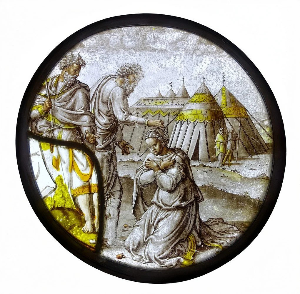 Stained glass window in the Schnütgen Museum in Cologne (Germany), depicting Miriam being punished with leprosy, 1530